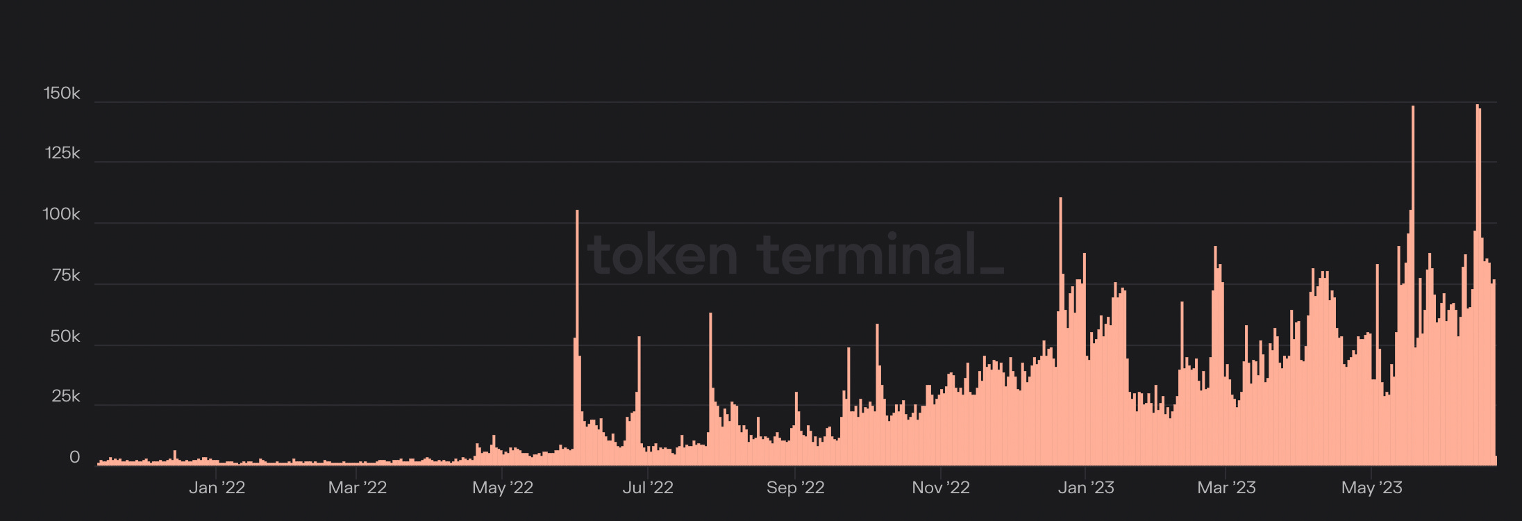 Like Arbitrum, Optimism continues to trend higher in daily users on the chain.