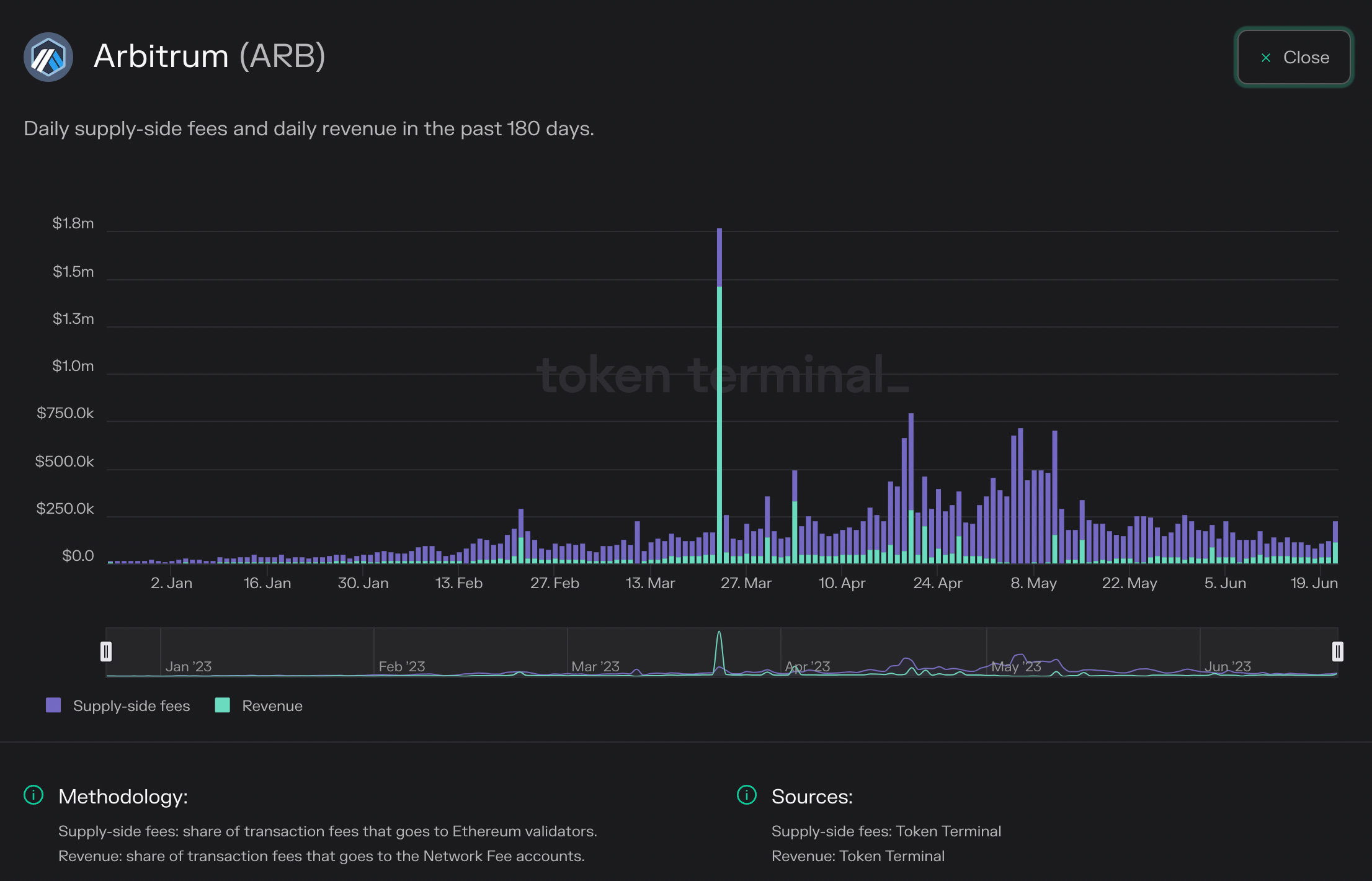It’s important to note that as of now, none of the revenue flows directly to the users in the case of either Arbitrum or Optimism. Whether or not this is considered a negative, as the revenue is used internally to grow the product by paying employees, etc., to ship new features, is not something I want to dwell on today. However, I'm sure that as time progresses and sequencers become decentralized, these rollups will implement some sort of increased utility, such as a fee-sharing model. While there might not be much token utility at this point, it shouldn't be concluded that this will always be the case.